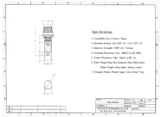 1. 相容的保險絲座:6.3 公釐 x 32 公釐
