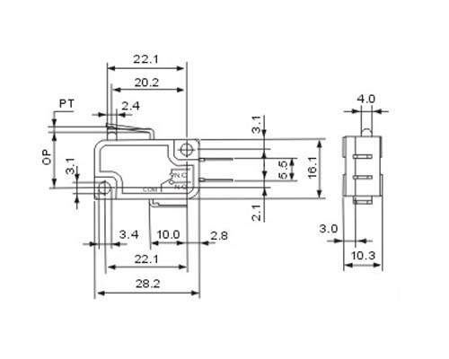 1. 額定:5 A 125 V/3 A 250A 2. 迴路:2 P 3. 接觸電阻:2.5 V DC 1 A 10 mΩ 或更少. 4. 絕緣電阻:500 V DC 100 mΩ 或更多 5. 耐壓強度:1500 V AC 1 min 6. 顏色:白/黑/紅/綠/黃