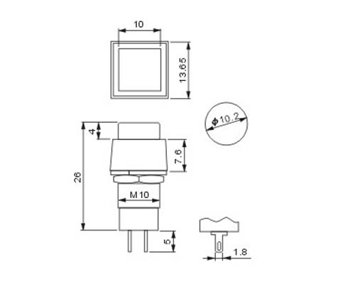 1. 額定:1 A 125 V/0.5 A 250A 2. 迴路:2 P 3. 接觸電阻:2.5 V DC 1 A 10 mΩ 或更少 4. 絕緣電阻:500 V DC 100 mΩ 或更多. 5. 耐壓強度:1500 V AC 1 min 6. 顏色:白/黑/紅/綠/黃
