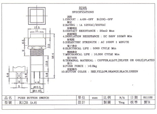 環保產品:使用塑膠,銅,鐵製造的按鍵開關
