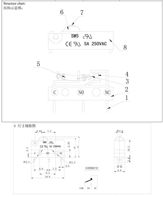 3. 接觸電阻:2.5 V DC 1 A 10 mΩ 或更少
