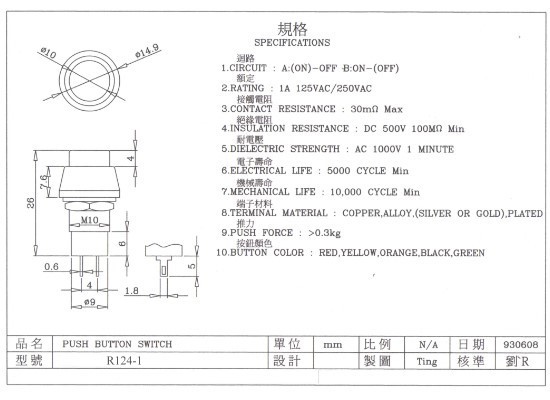 環保產品:使用銅、塑膠製造的按鍵開關
