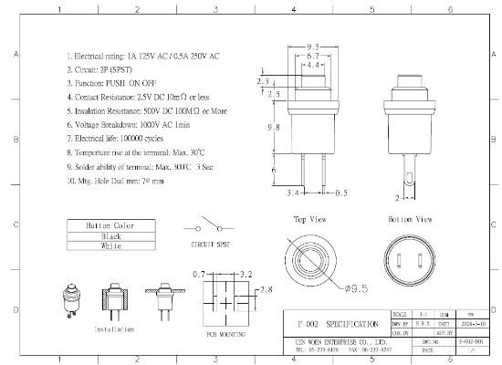1. 電子額定: 1 A 125 V AC/0.5 A 250 V AC