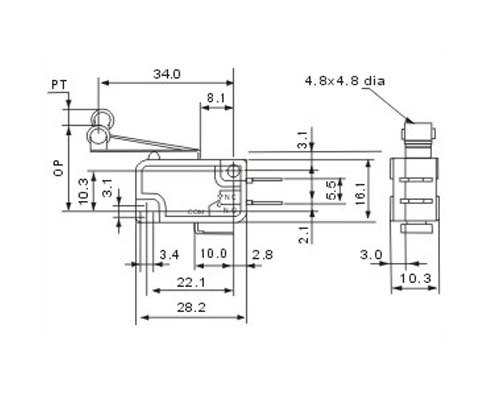 1. 額定:5 A 125 V/3 A 250A 2. 迴路:2 P 3. 接觸電阻:2.5 V DC 1 A 10 mΩ 或更少 4. 絕緣電阻:500 V DC 100 mΩ 或更多. 5. 耐壓強度:1500 V AC 1 min 6. 顏色:白/黑/紅/綠/黃